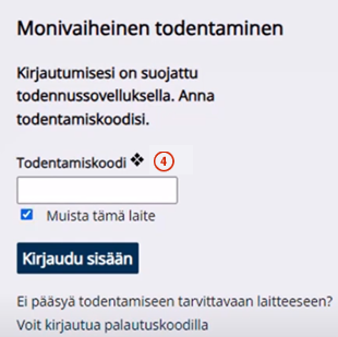 • Käytä kirjautumisessa todentamiskoodia.