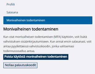 • Tarvittaessa voit poistaa todennussovelluksen käytöstä.